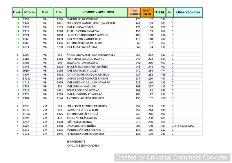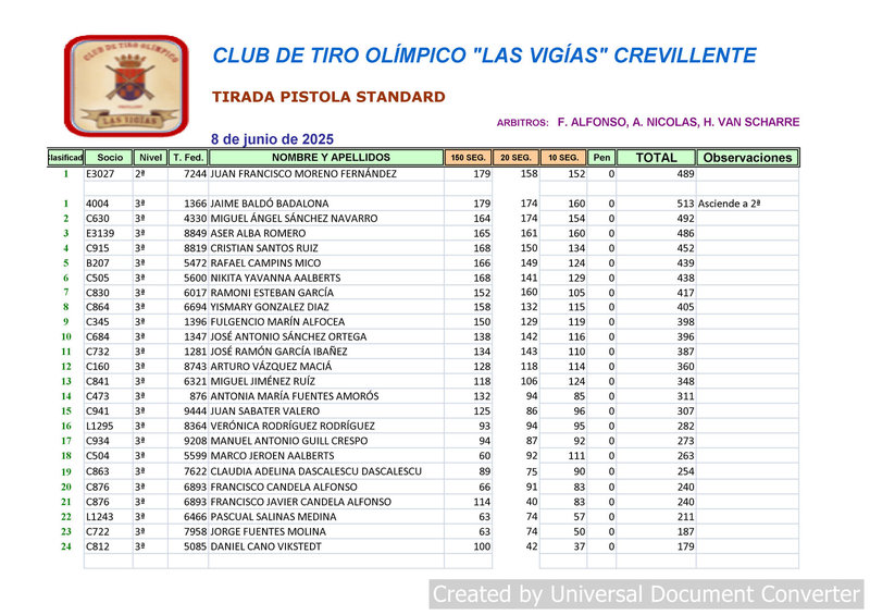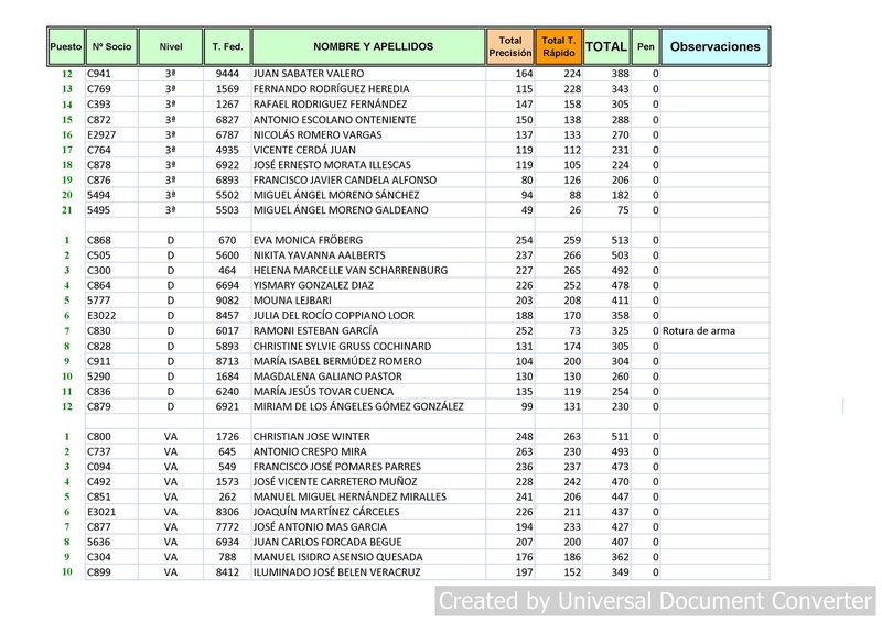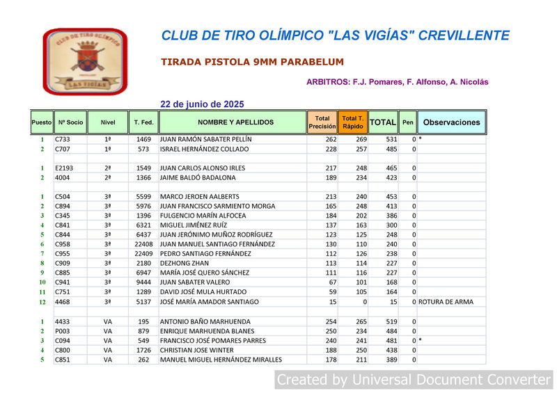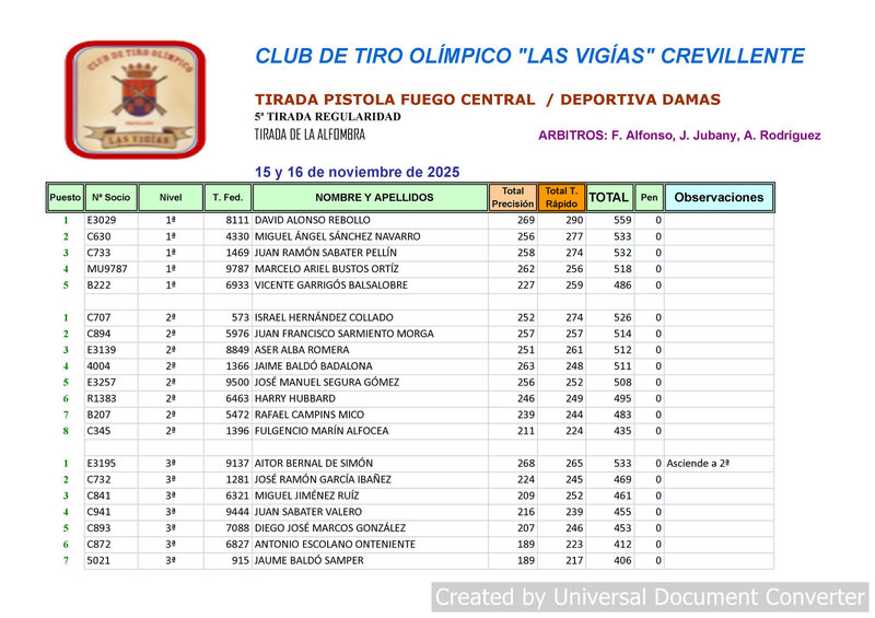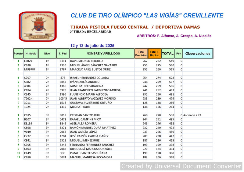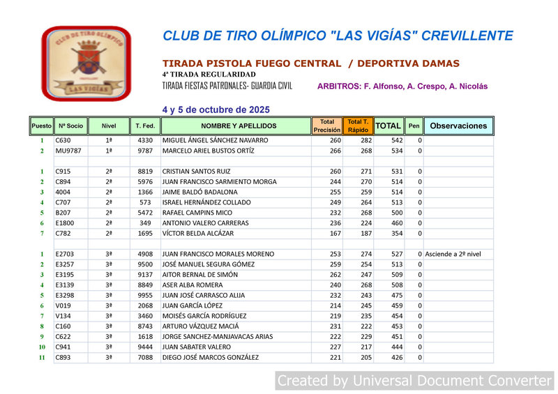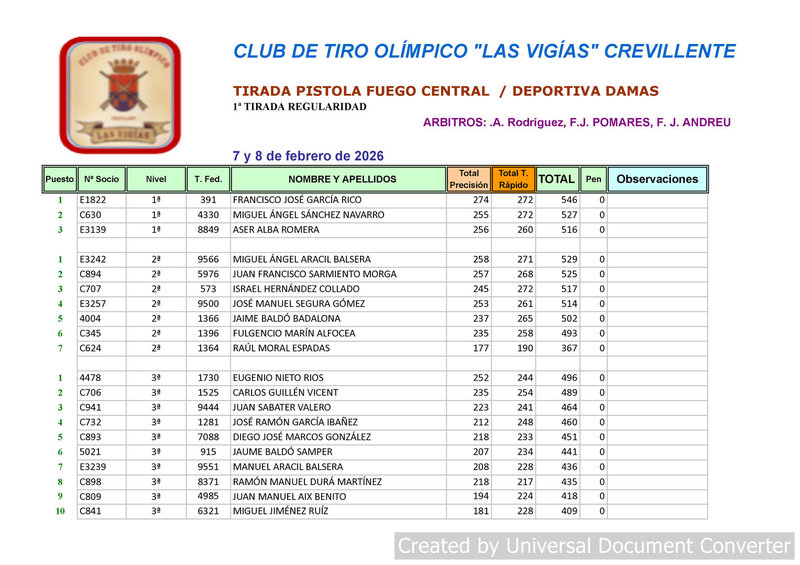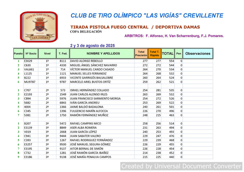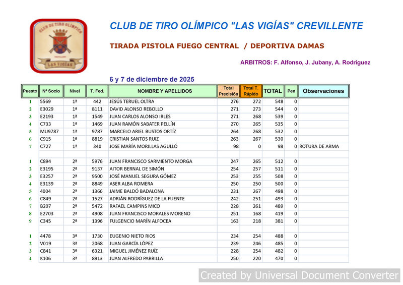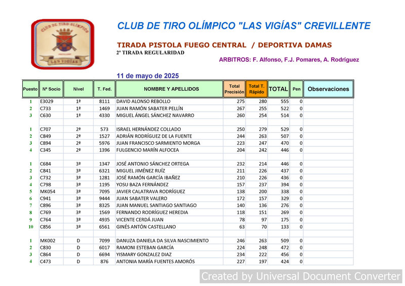 Tirada Pistola Fuego Central y Pistola Deportiva Damas